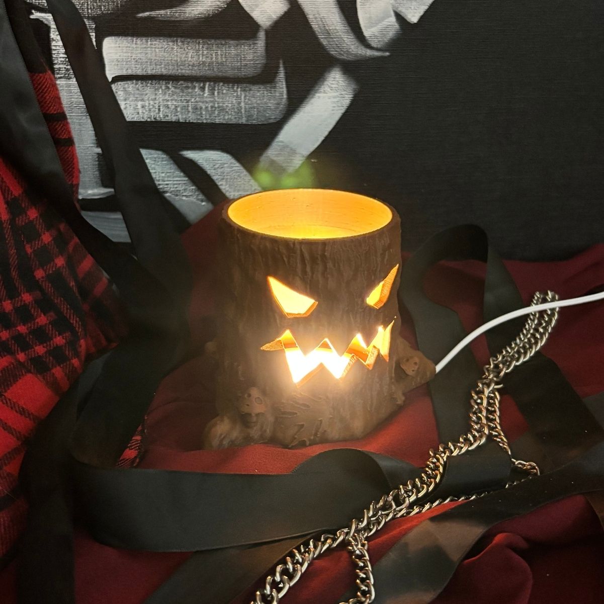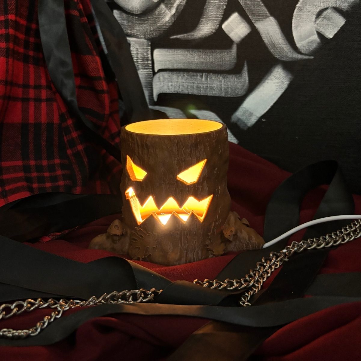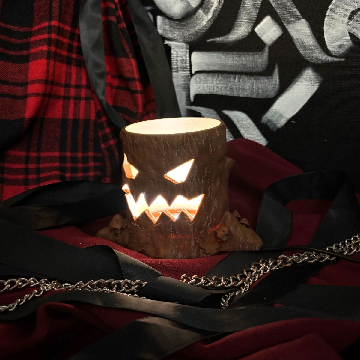 Оригінальна декоративна лампа у вигляді пенька з моторошним обличчям створює неповторну атмосферу та стане яскравим елементом вашого інтер’єру. Її виразний дизайн із зловісними очима та зубастою посмішкою ідеально підходить для Геловіну, тематичних вечірок або як незвичайний подарунок.