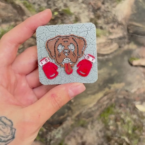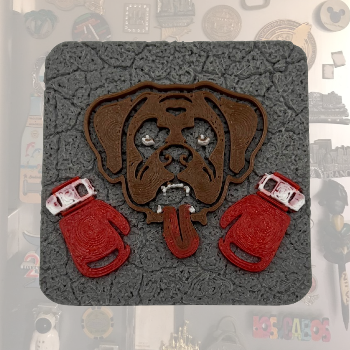Виготовлений з міцного PLA-пластику, розміром 5×5 см, магнітно тримається на холодильнику, металевому шафі чи робочому сейфі. Підійде як подарунок для любителів собак, спорту або тих, хто не проти трохи дози “бійцівського” настрою на кухні.