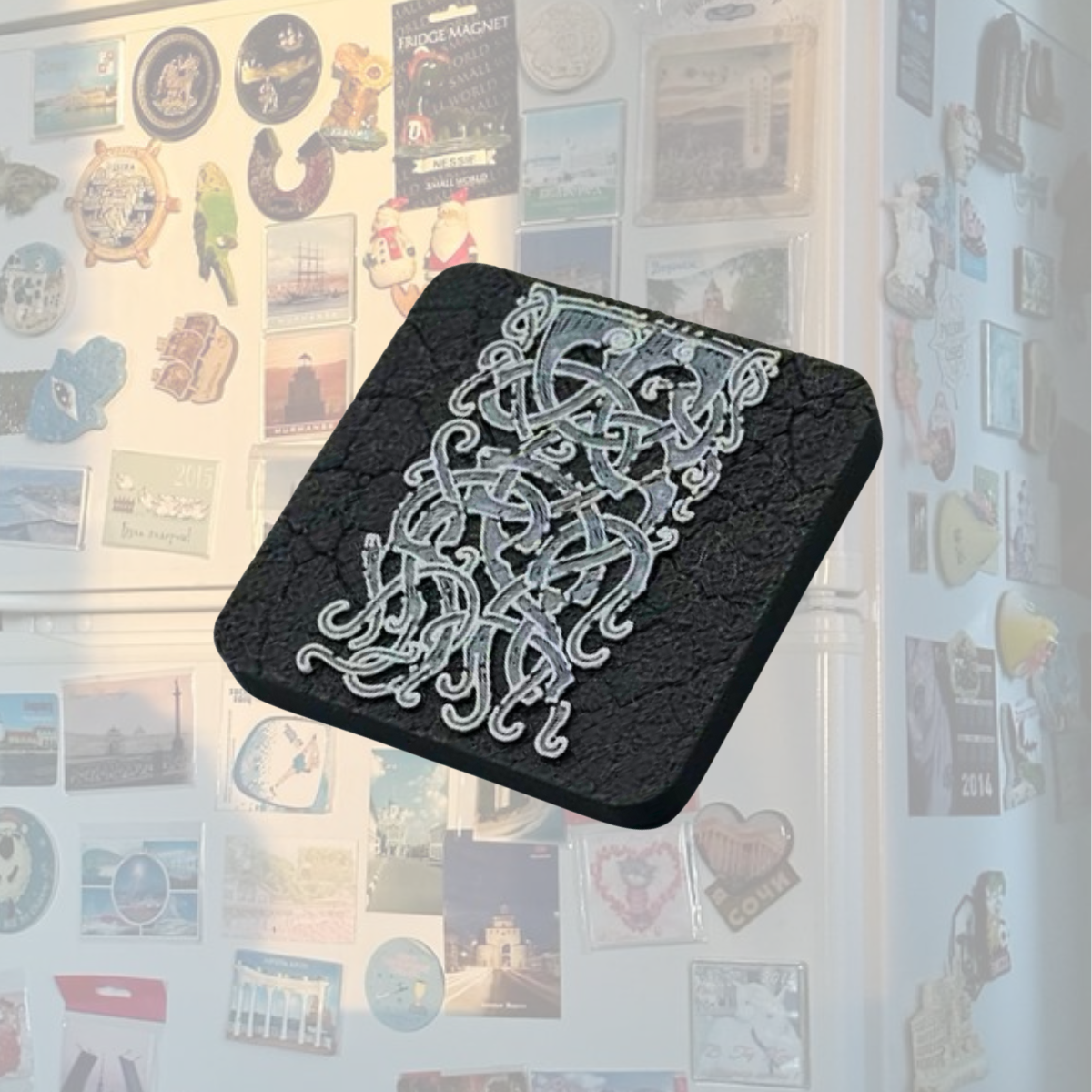 Ідеальний подарунок для шанувальників історії, скандинавської культури та естетики вікінгів. Прикрасьте ним холодильник, магнітну дошку або будь-яку металеву поверхню, додаючи атмосферу давніх легенд до свого простору.