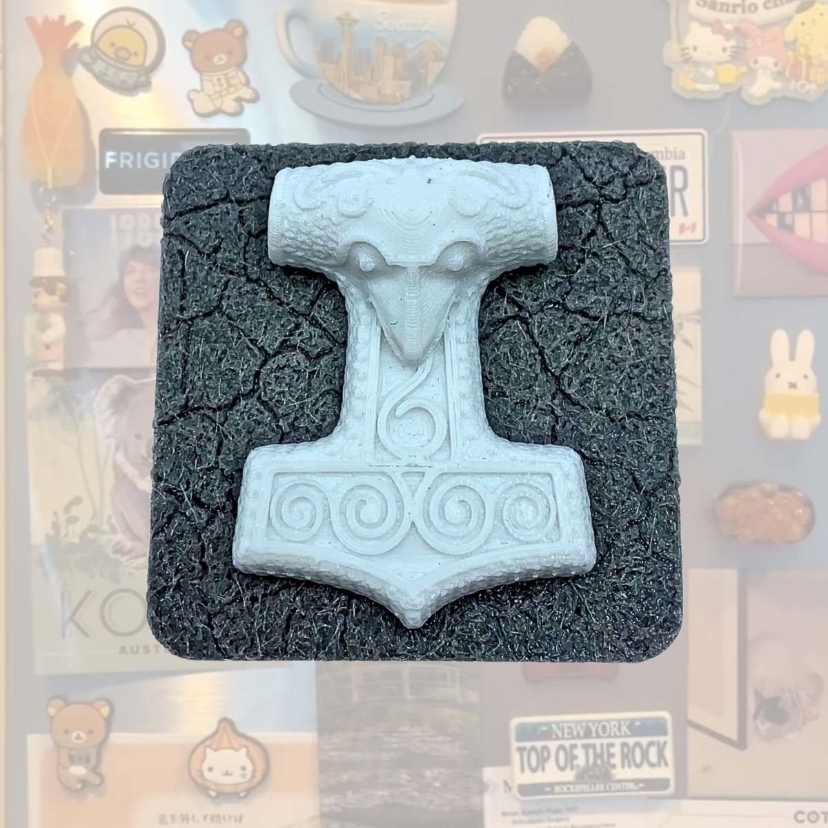 Магніт "Мьйольнір" — це символ сили, захисту та невичерпної енергії, втілений у легендарному молоті скандинавського бога Тора. Виготовлений з легкого та міцного PLA-пластику, розміром 5×5 см, цей магніт стане стильним акцентом на холодильнику, робочій поверхні чи металевій дошці.