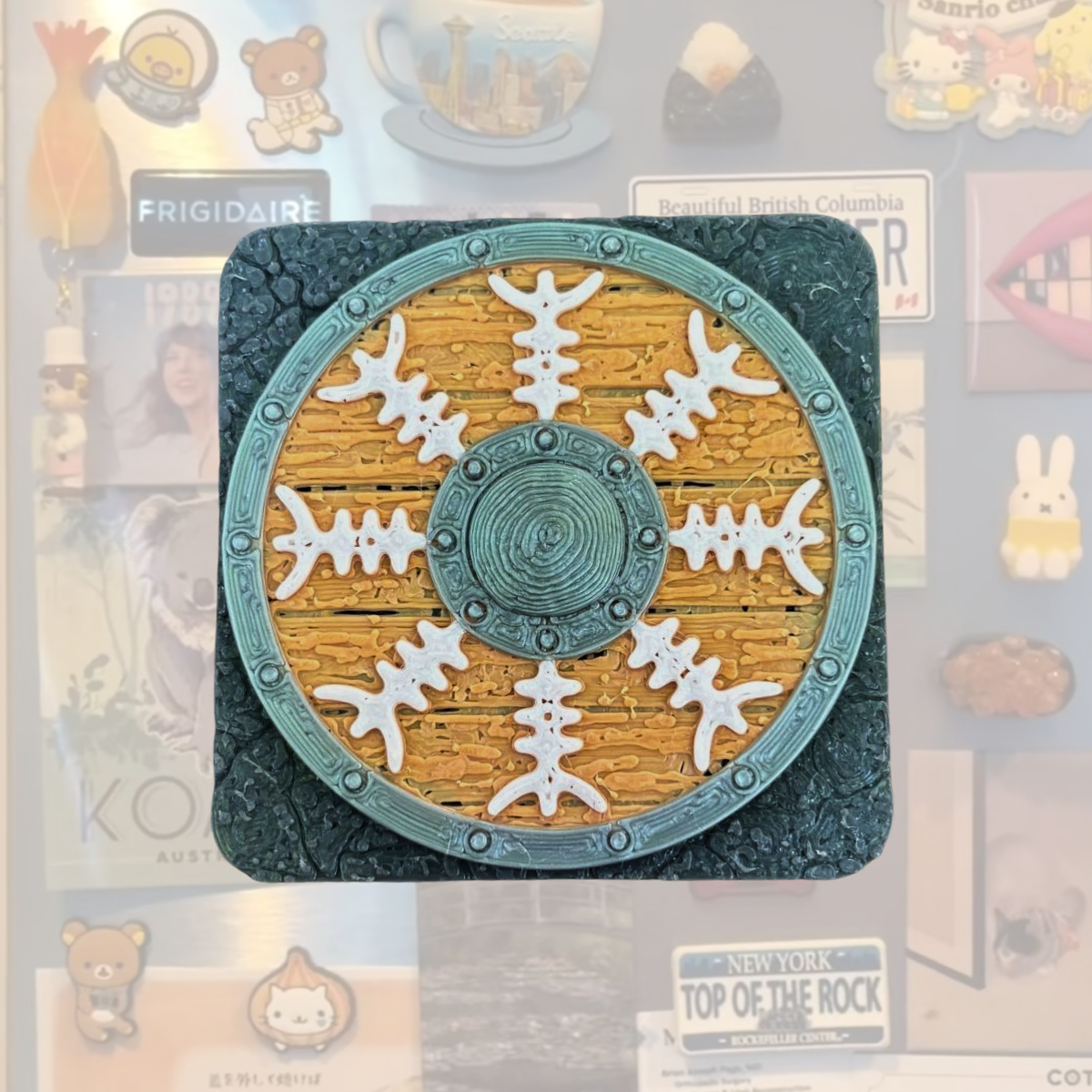 Магніт "Шолом Жаху на щиті" — це не просто аксесуар, а справжній символ внутрішньої сили та захисту, втілений у формі древнього скандинавського оберега. Виготовлений із міцного PLA-пластику, розміром 5×5 см, цей магніт стане яскравим елементом вашого інтер’єру.