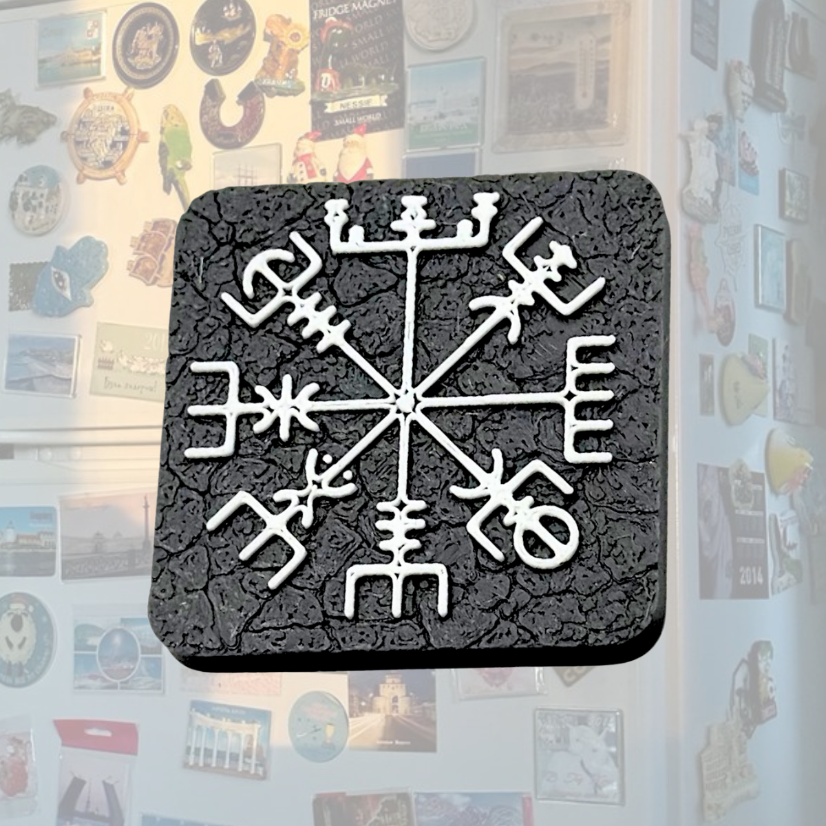 Цей стильний магніт із зображенням стародавнього скандинавського компаса Вегвізир стане потужним оберегом для дому чи робочого простору. Виготовлений із екологічного PLA-пластику, він має компактний розмір 5×5 см, що дозволяє легко розмістити його на холодильнику, магнітній дошці чи будь-якій металевій поверхні.